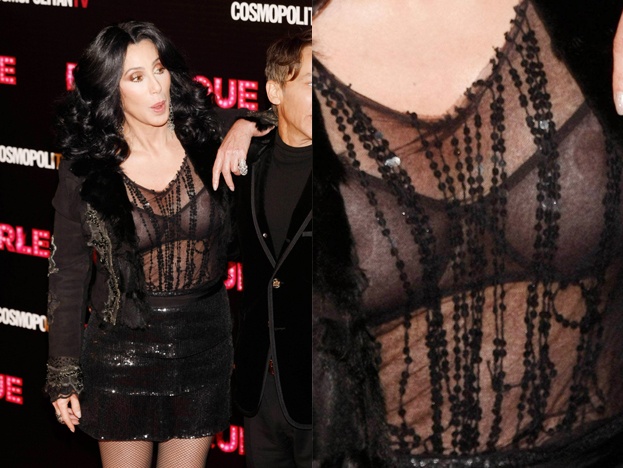 Cher i Christina Aguilera wyruszyły w podróż po Europie, by wypromować film Burleska. W czwartek wylądowały w Madrycie, gdzie wzięły udział w uroczystej premierze obrazu. Zdjęcia Christiny z imprezy już Wam pokazywaliśmy. Przypomnijmy: Wylewające się piersi Aguilery! Starsza aktorka też się popisała.